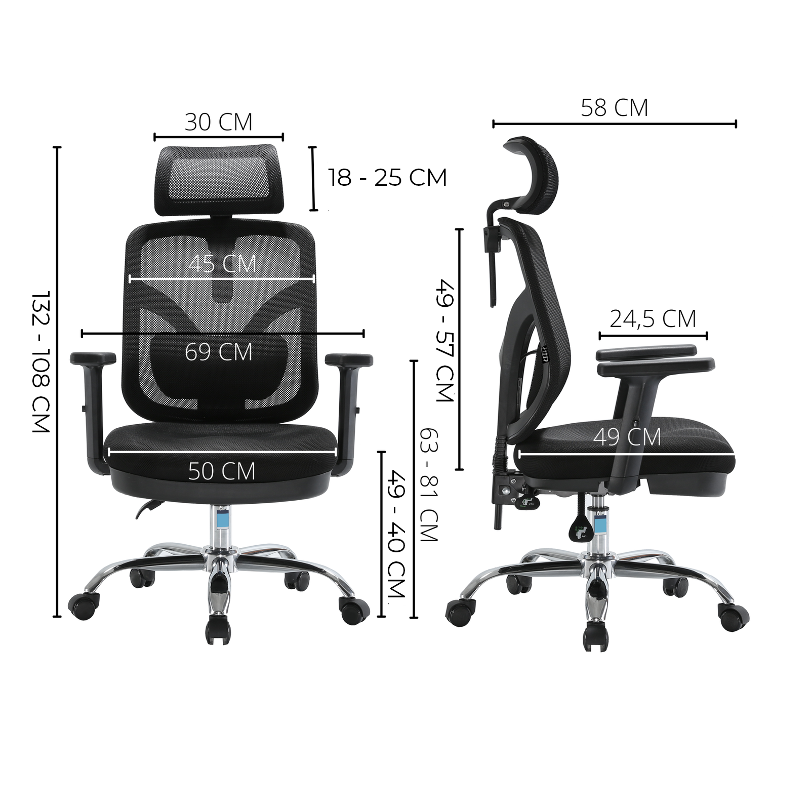 Regulowany zagłówek odciąża kark podczas długiego siedzenia.
