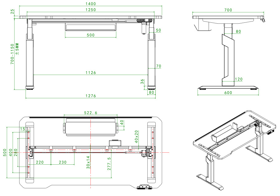Wystarczy nacisnąć przycisk. Mechanizm podnosi blat z prędkością 22 mm/s, pracując cicho i stabilnie. Zmieniaj pozycję w ciągu dnia, by zmniejszyć napięcia w plecach i poprawić koncentrację.