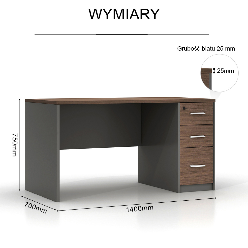- Przestronny blat 140 × 70 cm – miejsce na monitor, laptop i dokumenty.