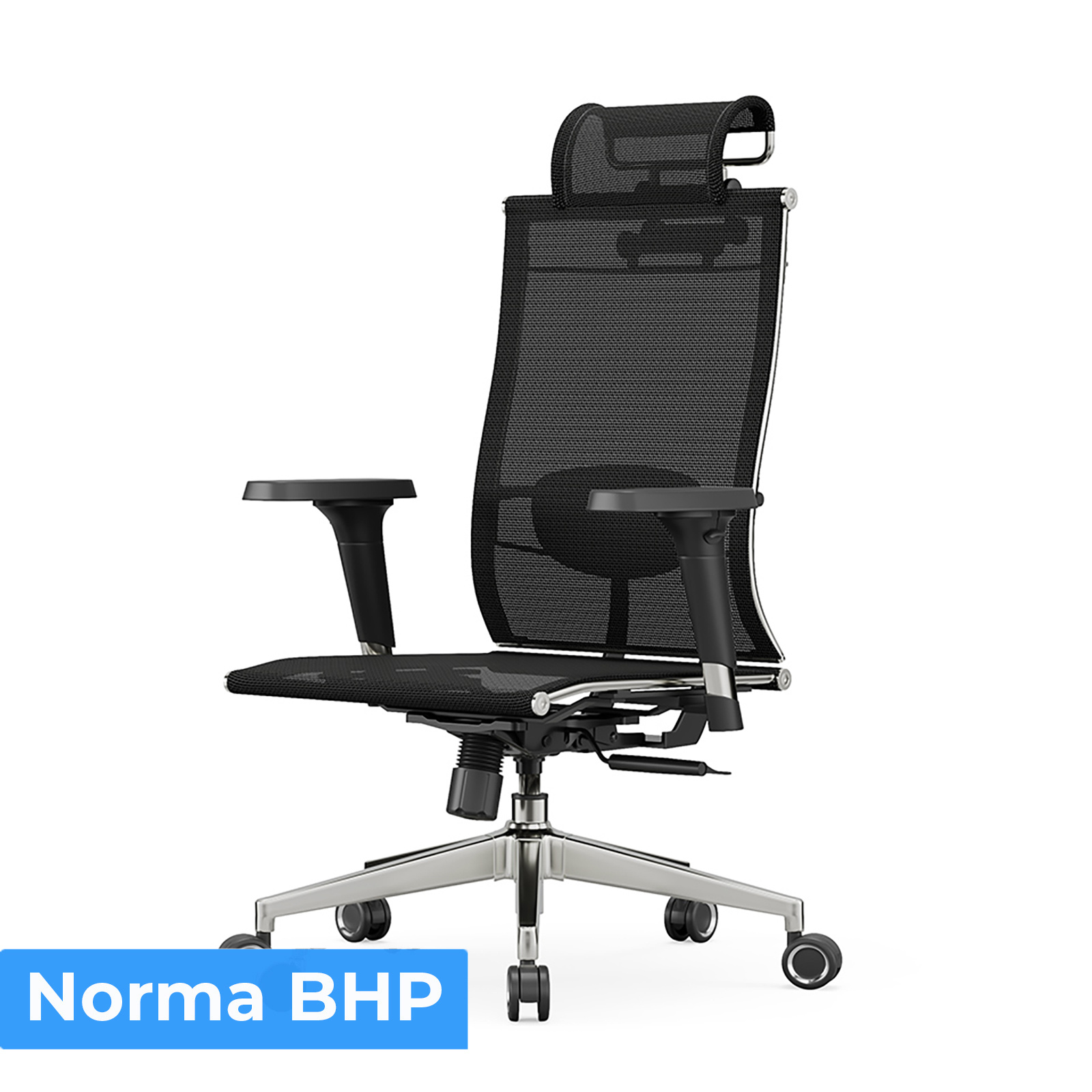iO łączy industrialny styl z funkcjami pro-zdrowotnymi: oparcie i siedzisko z siatki, podparcie lędźwi 2D, podłokietniki 3D oraz MULTIBLOCK ELITE-SYNCHRO (blokada w 4 pozycjach). Do biura i home office.