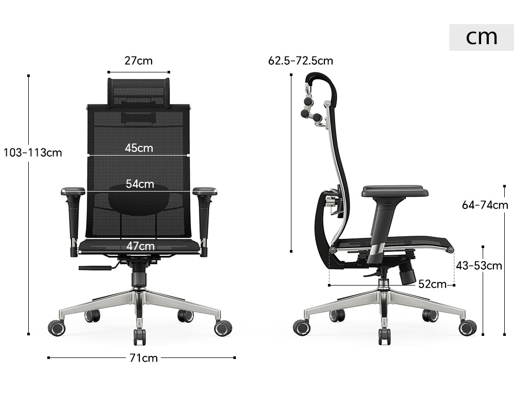 Elastyczna siatka dopasowuje się do sylwetki, a regulowane lędźwie ustawisz dokładnie w punkcie podparcia lordozy.